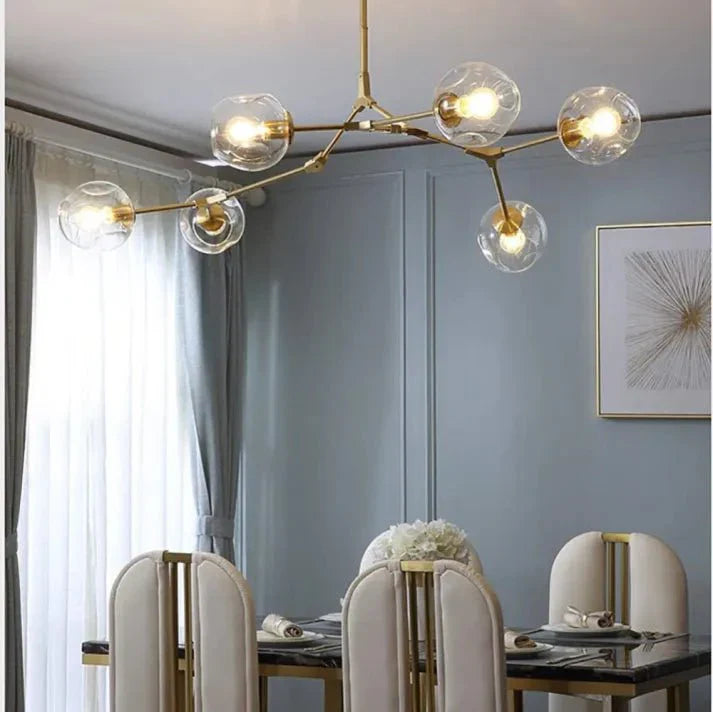 バイファーカションランプ バブルグラス スプートニクは、50年代のモダンな美学とバブルガラスの楽しいデザインを融合させ、目を引くビジュアルポイントを創出します。分岐したアームとバブル状の球体は、ムードのある光とアヴァンギャルドなスタイルを提供します。このランプはリビングルーム、ダイニングルーム、またはエントランスに最適で、どの部屋にもアーティスティックなスタイルとモダンなエレガンスを加えます。